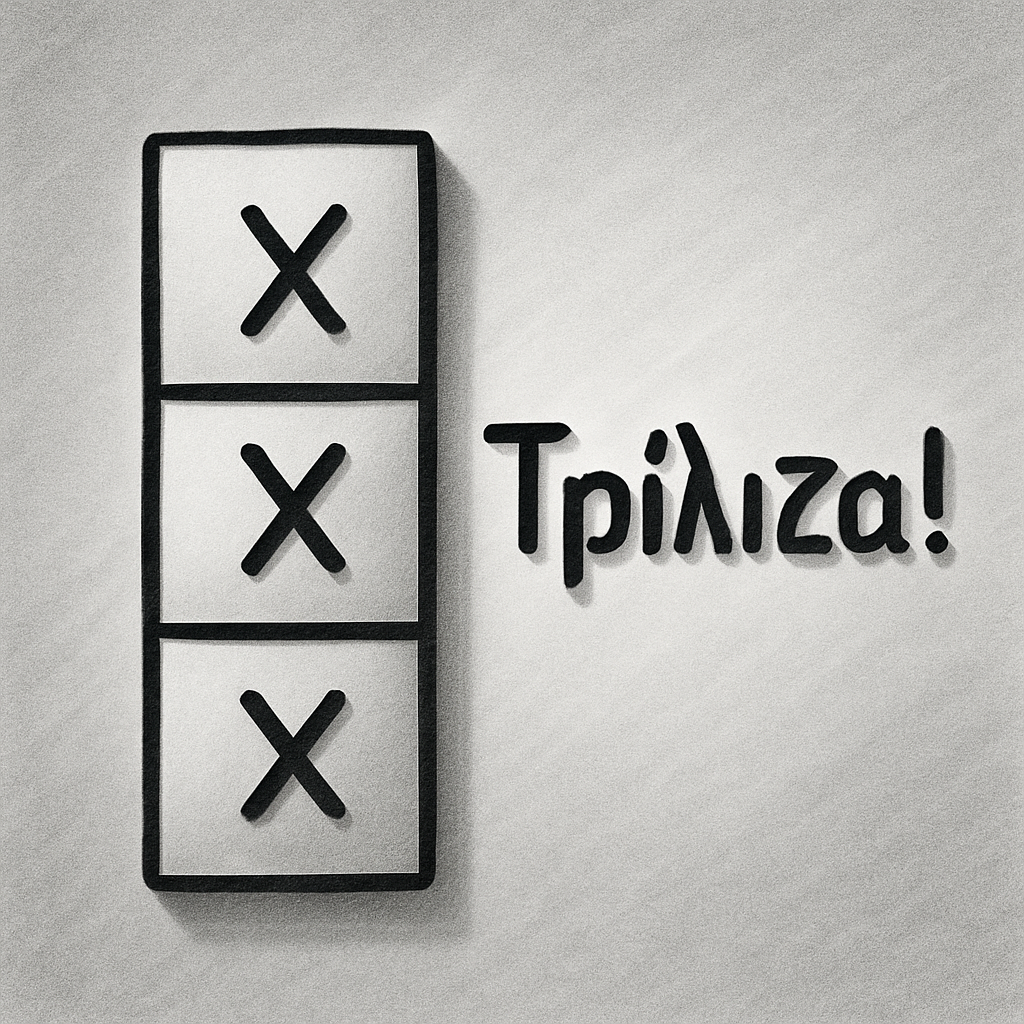 - Αν οι 3 είναι ίδιοι, εκτυπώνει την τρίλιζα και το μήνυμα "Τρίλιζα!".